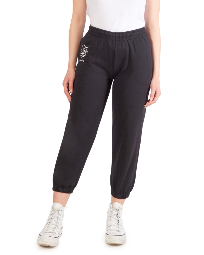 Pantalone tuta, colore nero, con logo XIOMA' bianco in verticale lungo la tasca sinistra